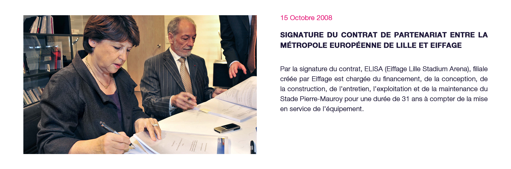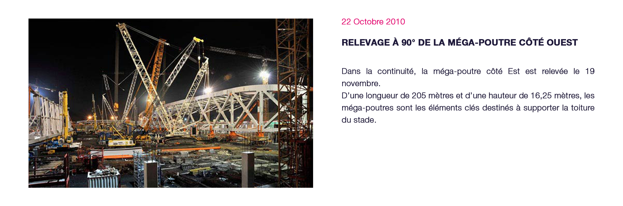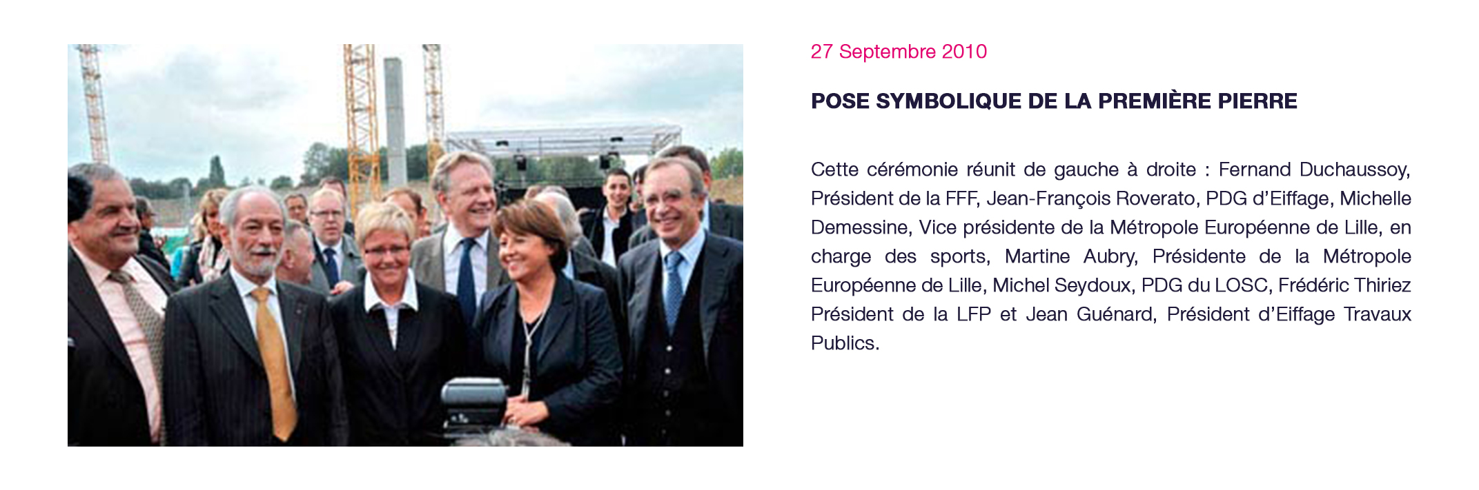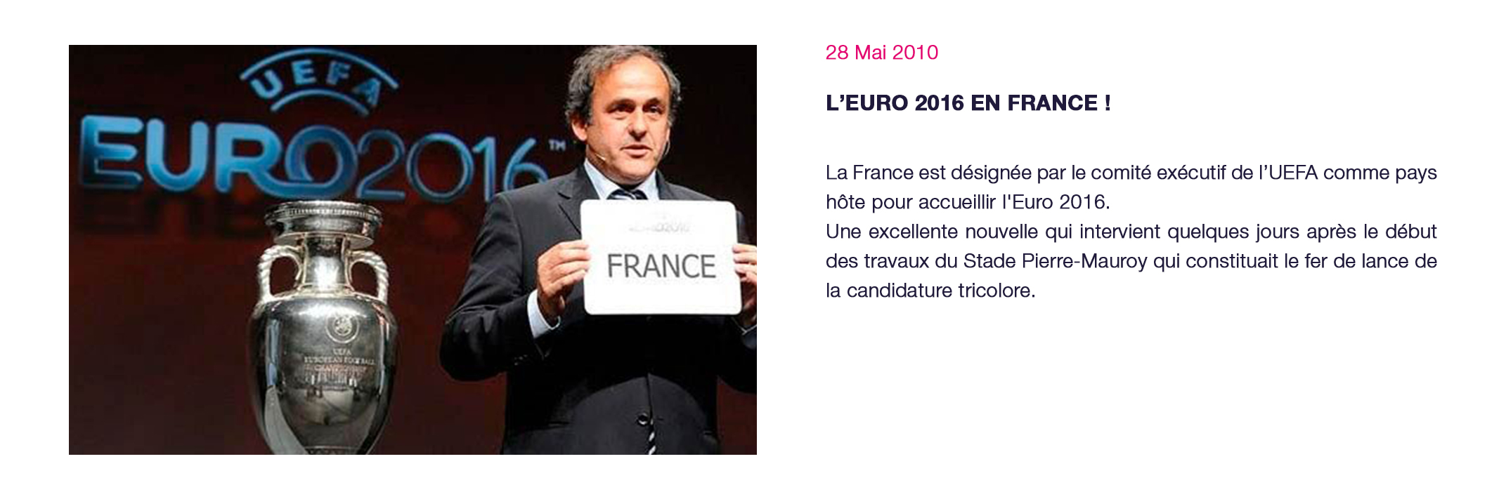 Événements majeurs : Matchs à domicile du LOSC club résident du Stade (championnat de Ligue 1 - coupe de France - coupe d’Europe), Test-match France – Argentine - novembre 2012, Demi-Finales du TOP14 - mai 2014, France-Jamaïque - dernier match de préparation à la Coupe du Monde de l’équipe de France - juin 2014