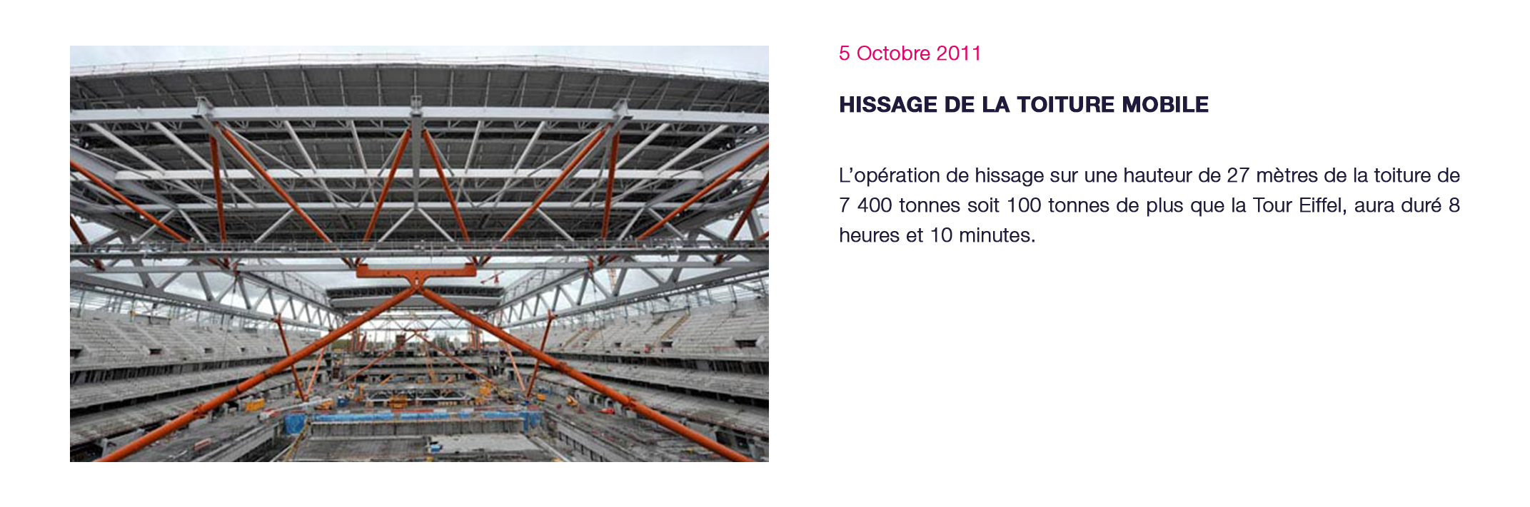7 400 T poids de la toiture, 100 tonnes de plus que la Tour Eiffel
