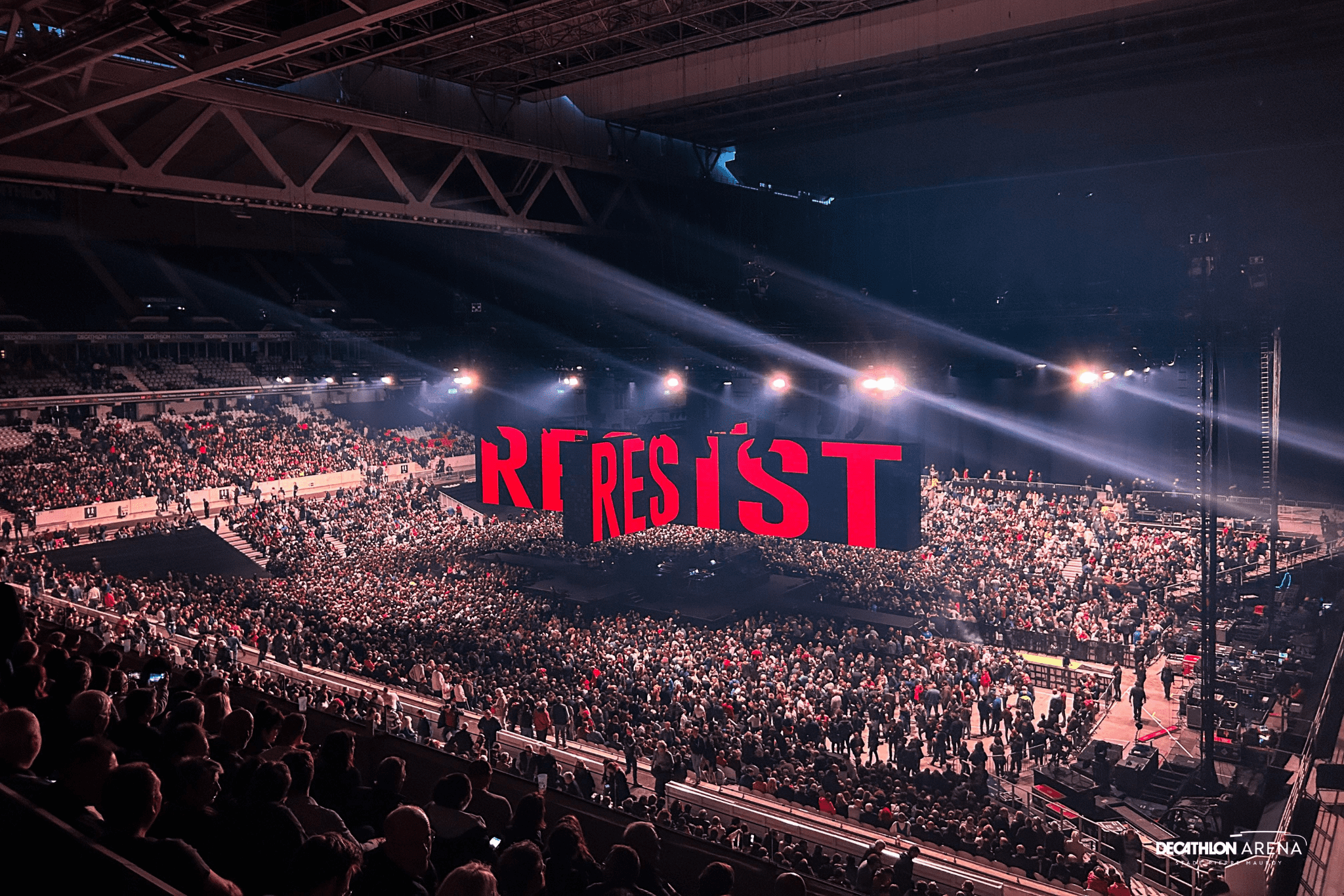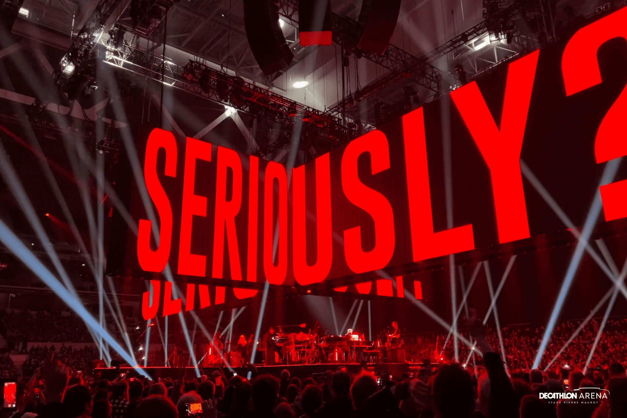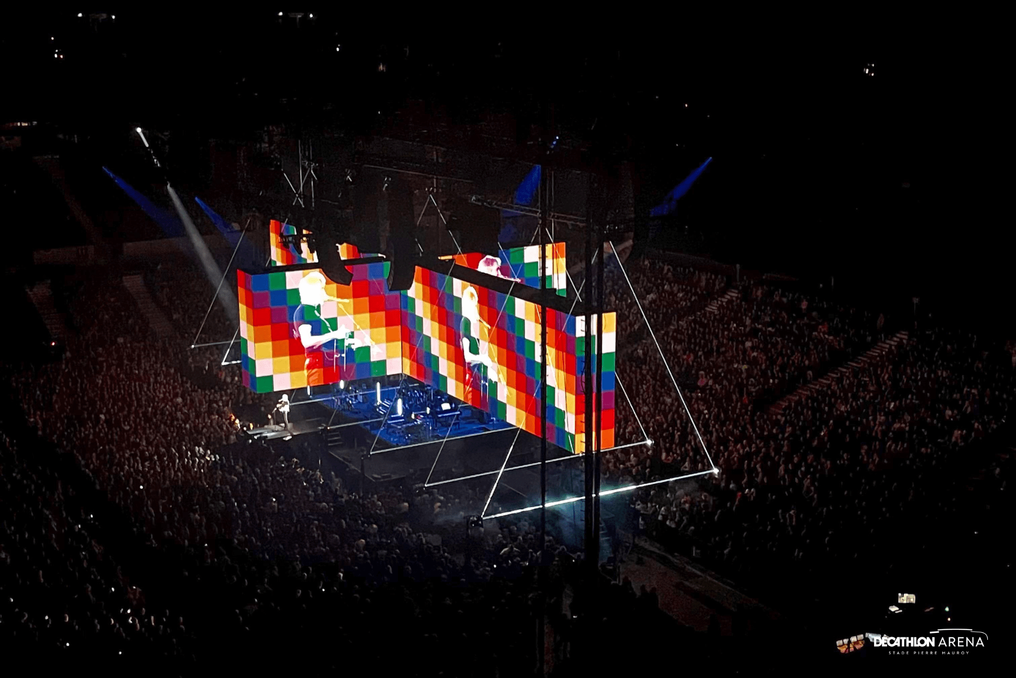 Après un premier passage en 2018, et pour la dernière date française de sa tournée « This Is Not a Drill », l’artiste britannique revenait avec une configuration inédite : une scène centrale rectangulaire divisée en quatre !